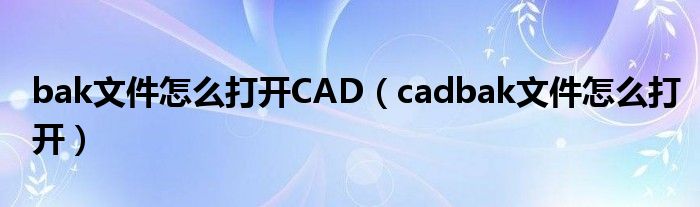 bak文件怎么打开CAD(cadbak文件怎么打开)