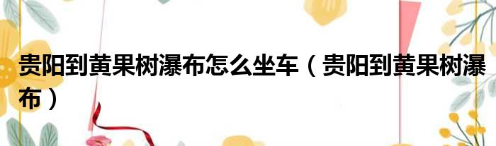 贵阳到黄果树瀑布怎么坐车(贵阳到黄果树瀑布)