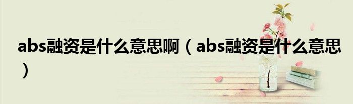 大家好,今天小六子来为大家解答以下的问题,关于abs融资是什么意思啊,abs融资是什么意思这个很多人还不知道,现在让我们一起来看看吧!