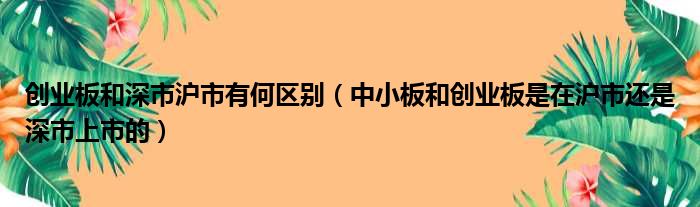 创业板和深市沪市有何区别(中小板和创业板是在沪市还是深市上市的)