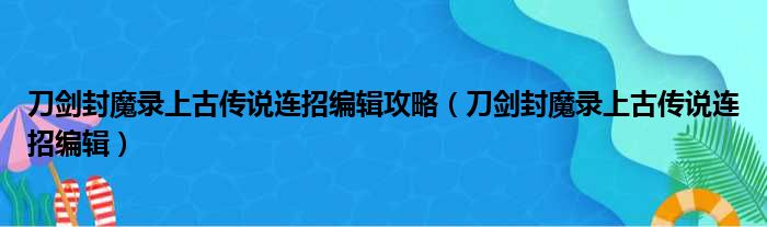 刀剑封魔录上古传说连招编辑攻略(刀剑封魔录上古传说连招编辑)