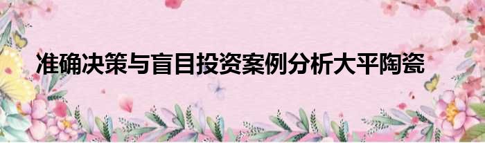 导读 大家好,今天小六子来为大家解答以下的问题,关于准确决策与盲目投资案例分析大平陶瓷这个很多人还不知道,现在让我们一起来看看吧!1、1 决