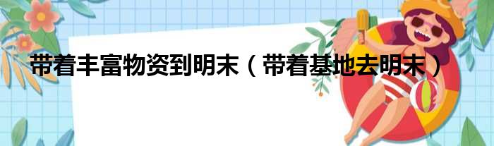 导读 大家好,今天小六子来为大家解答以下的问题,关于带着丰富物资到明末,带着基地去明末这个很多人还不知道,现在让我们一起来看看吧!1、很明