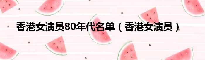 大家好,今天小六子来为大家解答以下的问题,关于香港女演员80年代名单,香港女演员这个很多人还不知道,现在让我们一起来看看吧!