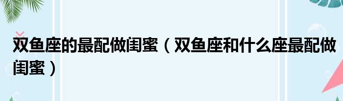 双鱼座的最配做闺蜜(双鱼座和什么座最配做闺蜜)