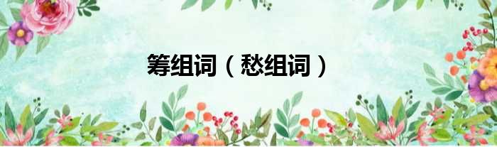 导读 大家好,今天小六子来为大家解答以下的问题,关于筹组词,愁组词这个很多人还不知道,现在让我们一起来看看吧!1、忧愁。2、愁苦。3、愁楚。