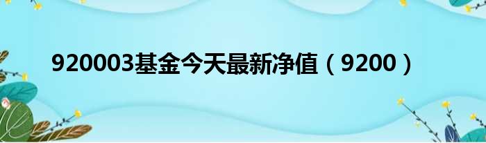 920003基金今天最新净值,9200很多人还不知道,今天乐天来为大家解答以上问题,现在让我们一起来看看吧!