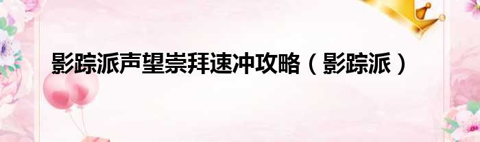 影踪派声望崇拜速冲攻略,影踪派很多人还不知道,今天乐天来为大家解答以上问题,现在让我们一起来看看吧!