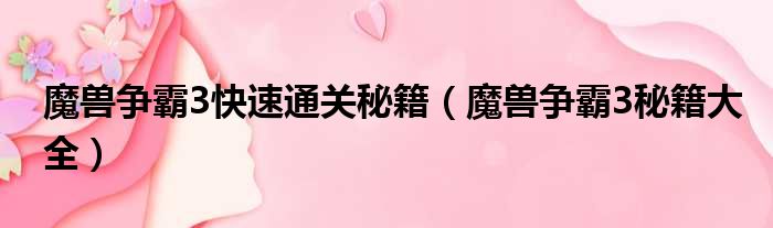 魔兽争霸3快速通关秘籍(魔兽争霸3秘籍大全)