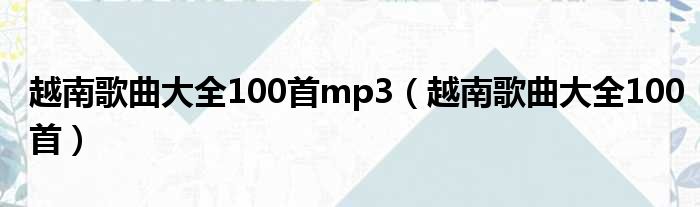 越南歌曲大全100首mp3(越南歌曲大全100首)
