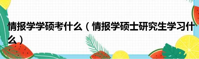 情报学学硕考什么(情报学硕士研究生学习什么)