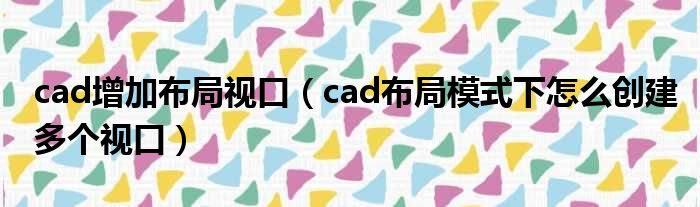 cad增加布局视口(cad布局模式下怎么创建多个视口)