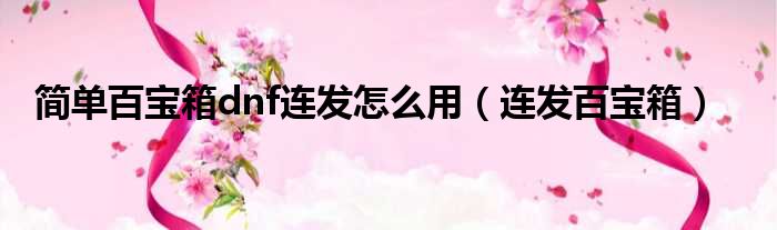 简单百宝箱dnf连发怎么用(连发百宝箱)