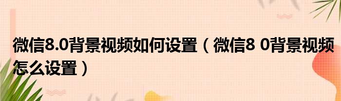 微信8.0背景视频如何设置(微信8 0背景视频怎么设置)