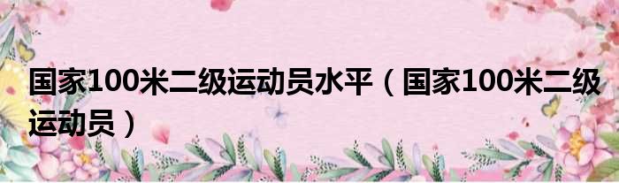 导读 大家好,今天小六子来为大家解答以下的问题,关于国家100米二级运动员水平,国家100米二级运动员这个很多人还不知道,现在让我们一起来看看