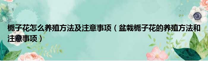 栀子花怎么养殖方法及注意事项(盆栽栀子花的养殖方法和注意事项)
