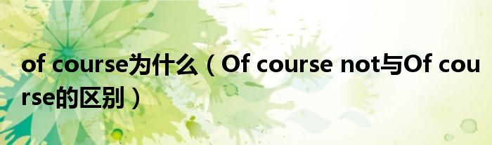 导读 大家好,今天小六子来为大家解答以下的问题,关于of course为什么,Of course not与Of course的区别这个很多人还不知道,现在让我们一起