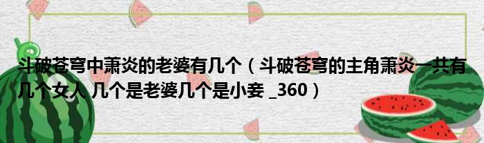 斗破苍穹中萧炎的老婆有几个(斗破苍穹的主角萧炎一共有几个女人 几个是老婆几个是小妾 _360)