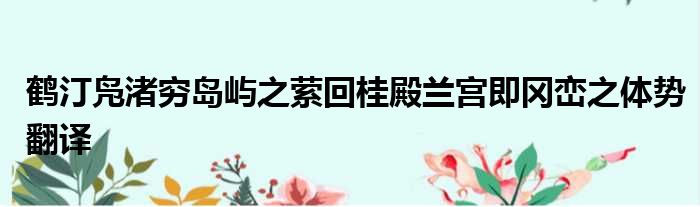 导读 大家好,今天小六子来为大家解答以下的问题,关于鹤汀凫渚穷岛屿之萦回桂殿兰宫即冈峦之体势翻译这个很多人还不知道,现在让我们一起来看看