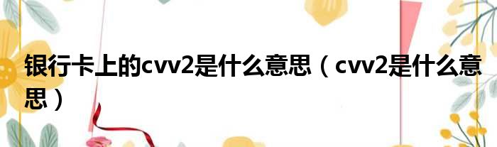 银行卡上的cvv2是什么意思(cvv2是什么意思)