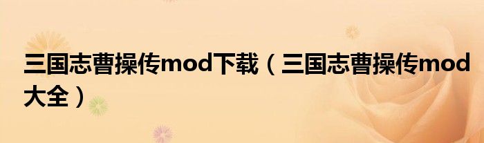 三国志曹操传mod下载(三国志曹操传mod大全)