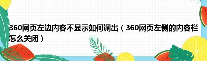 360网页左边内容不显示如何调出(360网页左侧的内容栏怎么关闭)