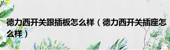 德力西开关跟插板怎么样(德力西开关插座怎么样)