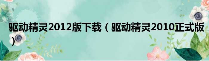 驱动精灵2012版下载(驱动精灵2010正式版)