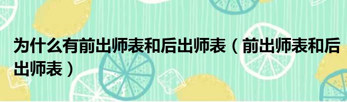 为什么有前出师表和后出师表(前出师表和后出师表)