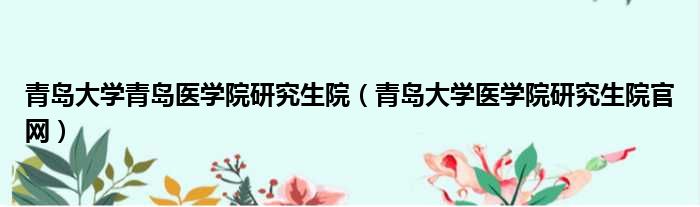青岛大学青岛医学院研究生院(青岛大学医学院研究生院官网)