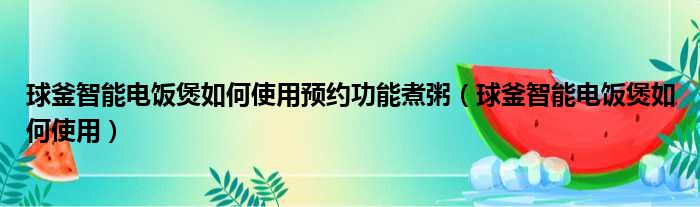 球釜智能电饭煲如何使用预约功能煮粥(球釜智能电饭煲如何使用)