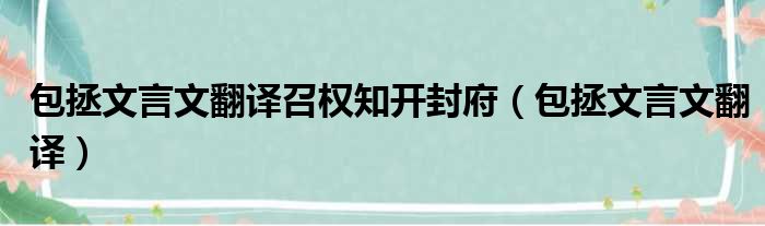 导读 大家好,今天小六子来为大家解答以下的问题,关于包拯文言文翻译召权知开封府,包拯文言文翻译这个很多人还不知道,现在让我们一起来看看吧