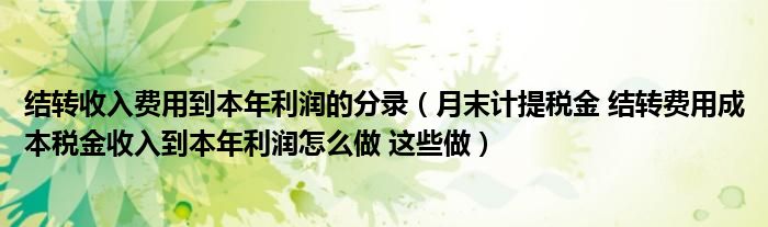 结转收入费用到本年利润的分录(月末计提税金 结转费用成本税金收入到本年利润怎么做 这些做)