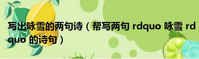 写出咏雪的两句诗(帮写两句 rdquo 咏雪 rdquo 的诗句)