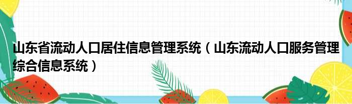 山东省流动人口居住信息管理系统(山东流动人口服务管理综合信息系统)