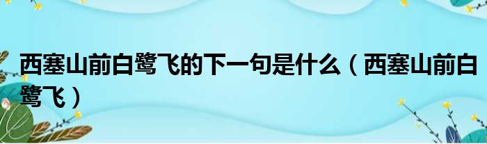 西塞山前白鹭飞的下一句是什么(西塞山前白鹭飞)