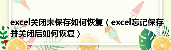 excel关闭未保存如何恢复(excel忘记保存并关闭后如何恢复)