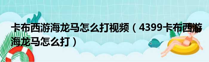 导读 大家好,今天小六子来为大家解答以下的问题,关于卡布西游海龙马怎么打视频,4399卡布西游海龙马怎么打这个很多人还不知道,现在让我们一起