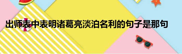 大家好,今天小六子来为大家解答以下的问题,关于出师表中表明诸葛亮淡泊名利的句子是那句这个很多人还不知道,现在让我们一起来看看吧!