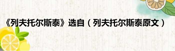 《列夫托尔斯泰》选自(列夫托尔斯泰原文)