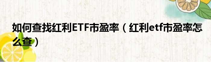 如何查找红利ETF市盈率(红利etf市盈率怎么查)