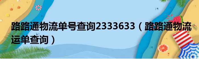 导读 大家好,今天小六子来为大家解答以下的问题,关于路路通物流单号查询2333633,路路通物流运单查询这个很多人还不知道,现在让我们一起来看看