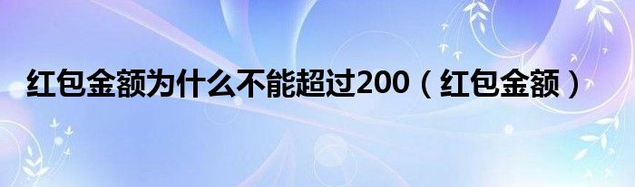 红包金额为什么不能超过200,红包金额很多人还不知道,乐儿来为大家解答以上问题,现在让我们一起来看看吧!