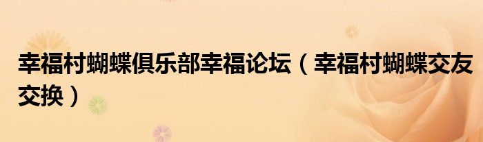 导读 大家好,今天小六子来为大家解答以下的问题,关于幸福村蝴蝶俱乐部幸福论坛,幸福村蝴蝶交友交换这个很多人还不知道,现在让我们一起来看看