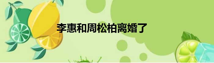 大家好,今天小六子来为大家解答以下的问题,关于李惠和周松柏离婚了这个很多人还不知道,现在让我们一起来看看吧!