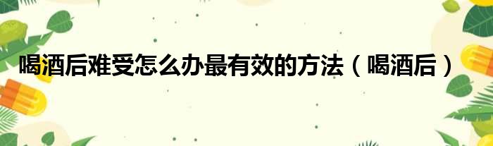 喝酒后难受怎么办最有效的方法(喝酒后)