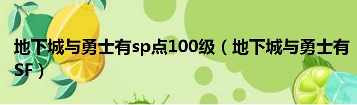 地下城与勇士有sp点100级(地下城与勇士有SF)
