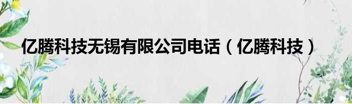 亿腾科技无锡有限公司电话,亿腾科技很多人还不知道,乐儿来为大家解答以上问题,现在让我们一起来看看吧!