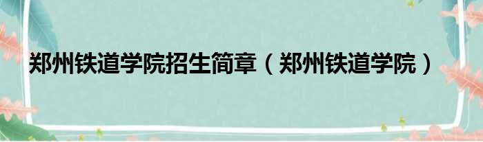 大家好,今天小六子来为大家解答以下的问题,关于郑州铁道学院招生简章,郑州铁道学院这个很多人还不知道,现在让我们一起来看看吧!