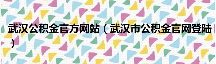 武汉公积金官方网站(武汉市公积金官网登陆)